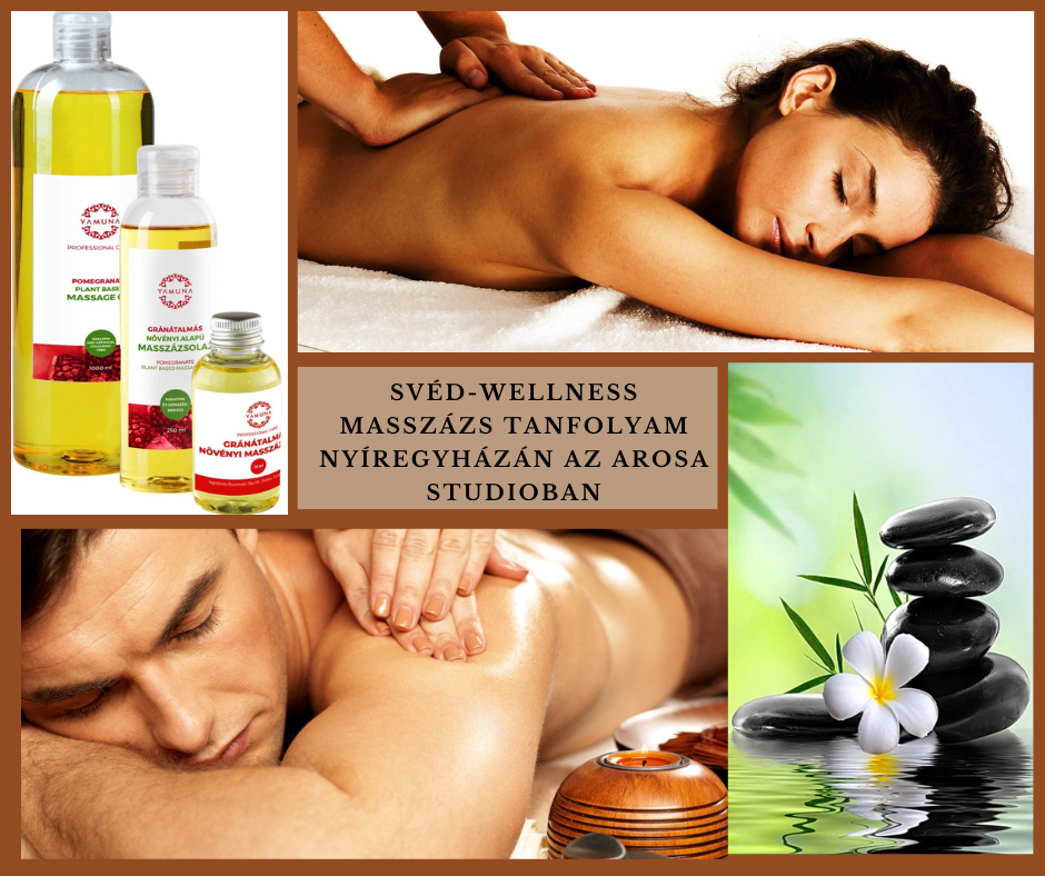 Svéd-wellness masszázs tanfolyam Nyíregyházán az Arosa Studio masszőr iskolában. Kormányhivatal által regisztrált, vállalkozóként masszázs tevékenység folytatására, külföldi munkavállalásra alkalmas tanúsítvánnyal, igény esetén angol/német nyelven is. Időpont: 2026. április 18-19. szombat-vasárnap. Ár: 50 000 Ft, kedvezményre jogosult tanulóinknak 45 000,- Ft, ill. 40 000,- Ft.2 napos intenzív, gyakorlatorientált képzés, ami után a tanulók heti 1 alkalommal keddi napokon ingyenes gyakorlási lehetőséget kapnak, illetve ingyenesen gyakorolhatnak a következő tanfolyamokon. A résztvevők elsajátítják a svéd masszázs fogásait, és egy sor egyéb masszázsokból átvett technikát, ill. megtanulnak egy 1 órás, közel 50 fogásból álló, legmagasabb elvárásoknak is megfelelő, egész testre kiterjedő professzionális wellness masszázs kezelést. A képzési tematikát sok év hazai gyógymasszőri illetve 4-5 *-os, luxushajókon és szállodákban szerzett tapasztalat alapján állítottuk össze. Az oktatás során olyan technikákat és értékes tudnivalókat is átadunk a tanulóinknak amit más iskolák nem tanítanak meg. További részletek:Kinek ajánljuk a tanfolyam elvégzését? Ajánljuk már végzett masszőröknek, akik szeretnének wellness irányban szakmailag tovább fejlődni. Ajánljuk azoknak is akik most ismerkednek a masszázzsal, de nem csak hivatásosoknak, hanem olyan érdeklődőknek is akik csak otthon, illetve családi körben szeretnének masszírozni. Iskolánkban a tanulóink nem egymáson gyakorolnak, erre a célra külsős modelleket hívunk, így a résztvevők a teljes képzési időt gyakorlatra használják fel.A svéd-wellness masszázs tanfolyam mellett még sok egyéb masszázs képzést is kínálunk. Jelentkezés a 30/9036 624-es számon, ill. Messenger üzenetben.